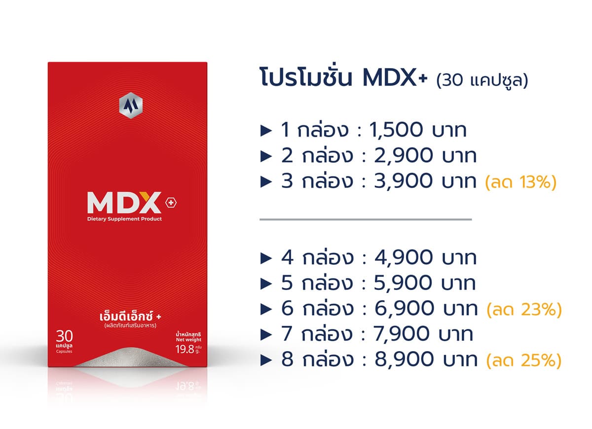 💡 เคล็ดลับการทาน MDX+ เมื่อพอใจผลลัพธ์แล้ว สามารถทานทุกวันระยะยาว เพื่อสุขภาพแข็งแรงตลอดเวลา หรือหยุดทานก็ได้เช่นกัน